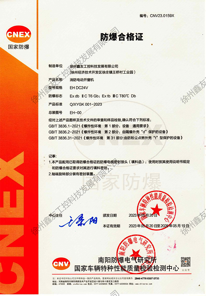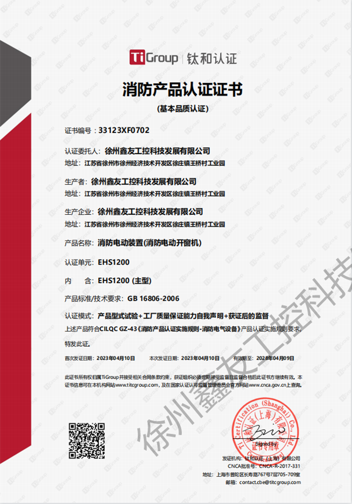 徐州鑫友工控科技發(fā)展有限公司成立于2008年,占地31600平方米,全資子公司:江蘇良紫工程科技有限公司,旗下 有“鑫友”及“MASTER.W主人窗控”兩個(gè)品牌系列,公司全面貫徹執(zhí)行IS09001:2015質(zhì)量管理體系標(biāo)準(zhǔn),產(chǎn)品順利通過歐盟CE認(rèn)證和中國***消防電子產(chǎn)品認(rèn)證,通過可燃性粉塵環(huán)境下、爆炸性環(huán)境下防爆合格產(chǎn)品檢驗(yàn)。排煙天窗整窗通過***消防產(chǎn)品質(zhì)量監(jiān)督檢驗(yàn)中心檢測(cè)。先后獲得多項(xiàng)******及榮譽(yù)證書。集研發(fā)、加工、生產(chǎn)、制造、銷售、安裝及售后于一體,是一家高起點(diǎn)、研發(fā)能力強(qiáng)的專業(yè)智能化***技術(shù)企業(yè)。